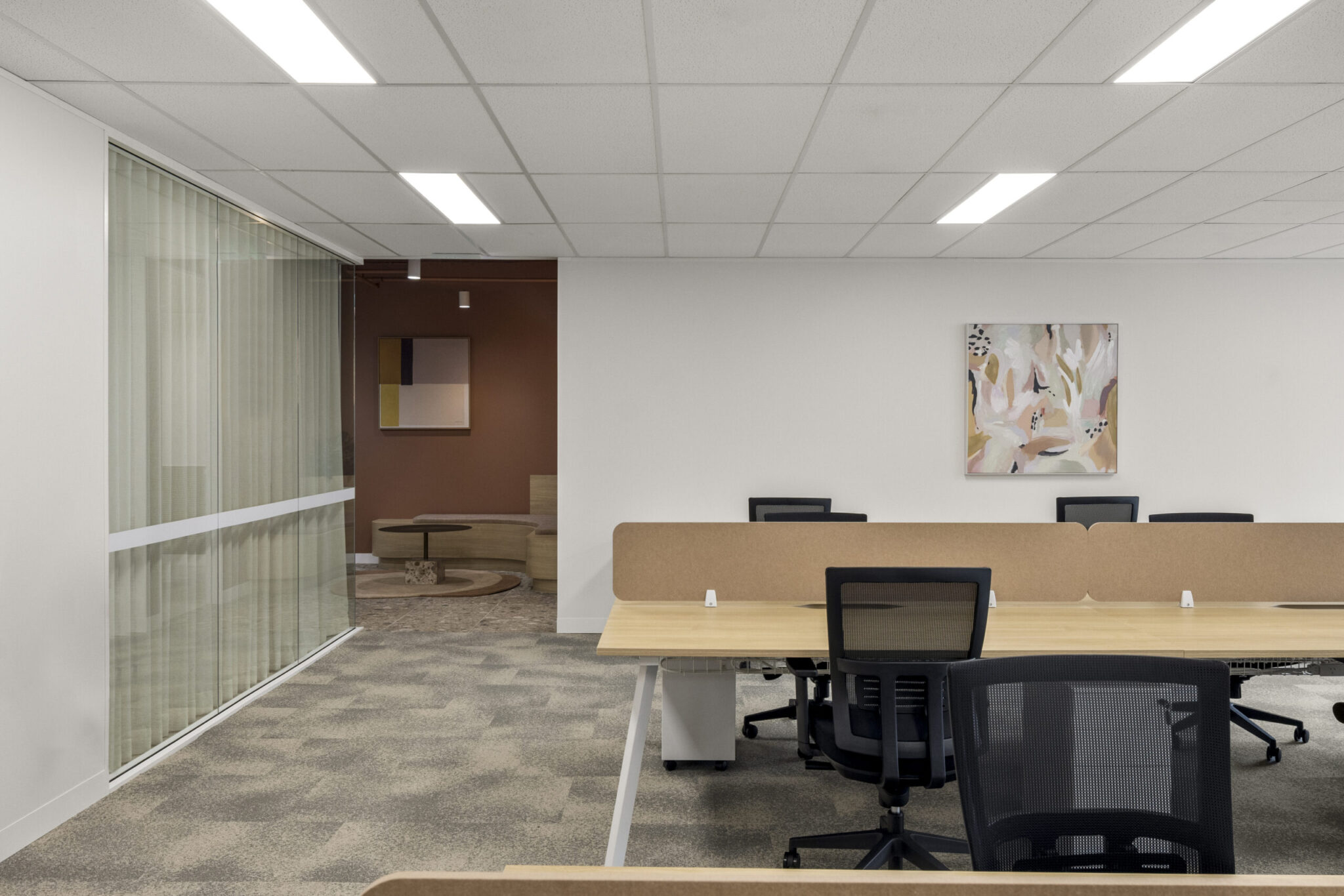 Each suite was carefully designed to appeal to a broad tenant market, balancing functionality with a contemporary aesthetic to create flexible, move-in-ready workspaces. A cohesive design language was carried throughout the lift lobbies and tenancies, elevating the overall presentation of the floor while maintaining a sense of consistency.
