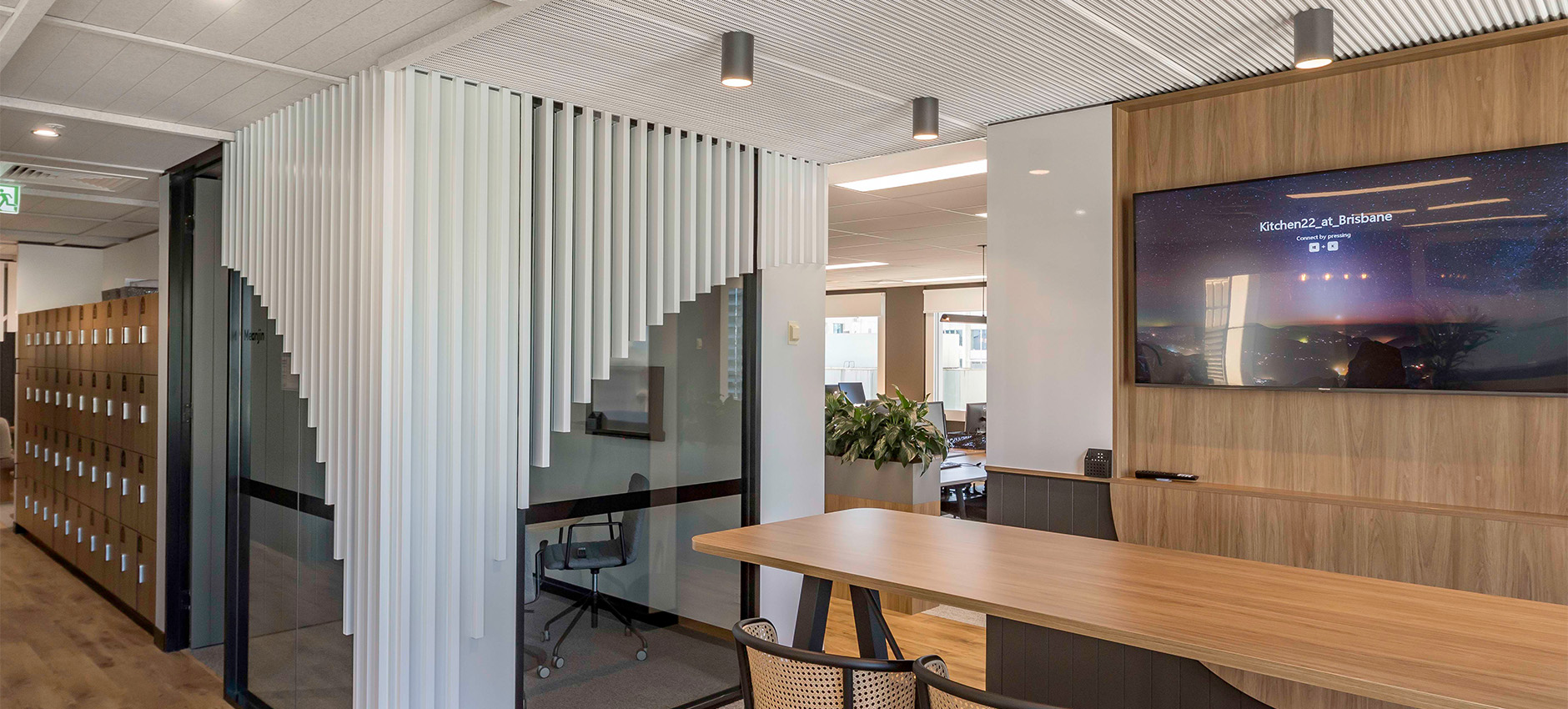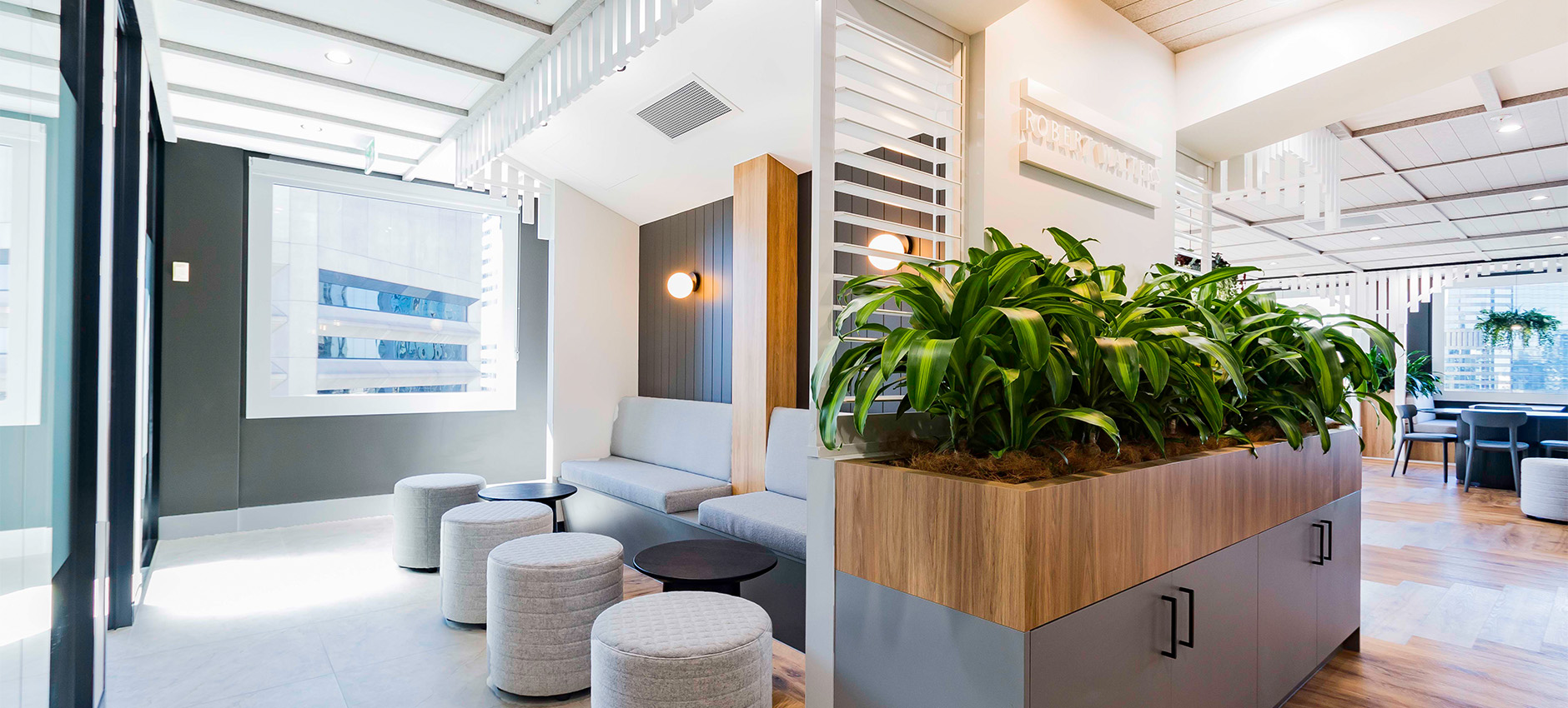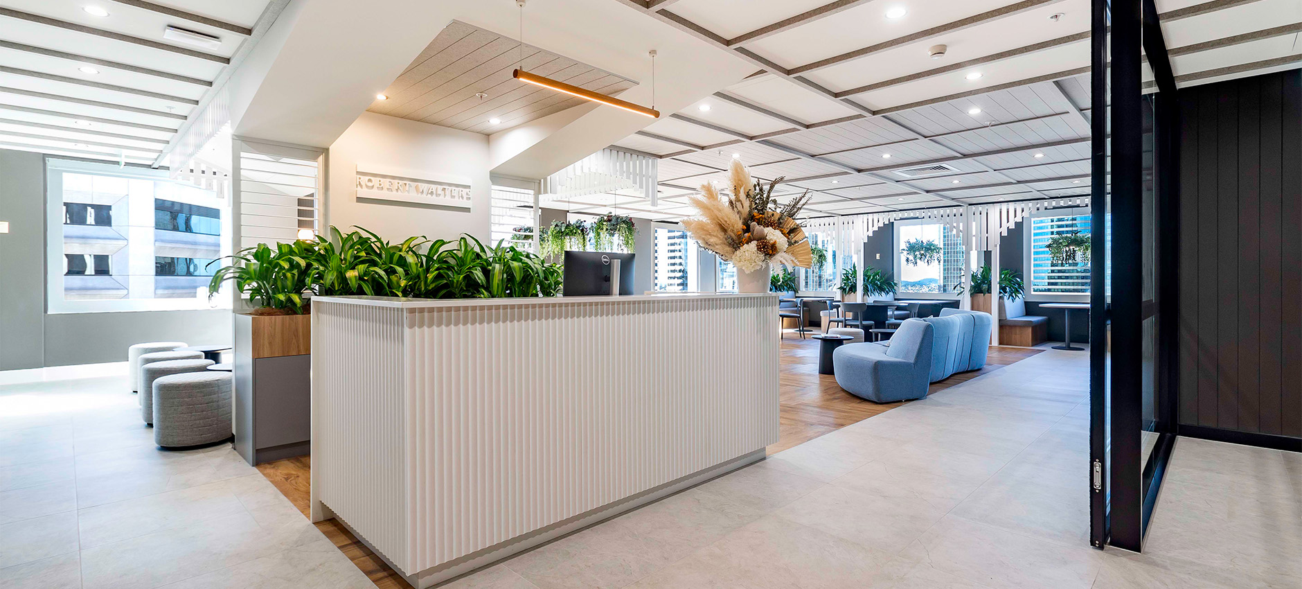 This 2,140 sqm fitout for Robert Walters Brisbane was envisioned as a workplace that seamlessly blends contemporary design with the timeless charm of the classic Queenslander home.