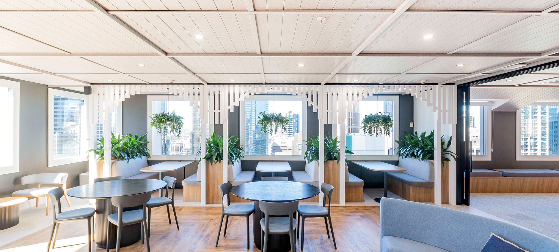 Inspired by Queensland’s iconic indoor–outdoor lifestyle, the design fosters a sense of warmth, comfort, and connection, resulting in a contemporary workplace that captures the essence of the region’s enduring style.